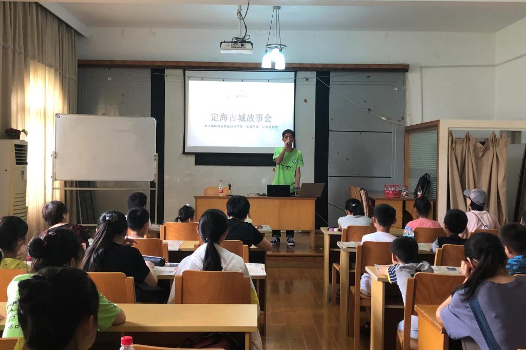 从今年3月份开始,实践队员便跟着孙峰老师一起走读千岛,每月1-2次的走读研学活动使同学们认识舟山、了解舟山、爱上舟山。来舟山不到一年的大一新生,要给舟山的青少年讲述舟山故事,大家不由得为自己捏了一把汗。7月份,经过3个晚上的集体备课和试讲,队员们终于如愿当上了小老师。同学们通过播放《千年定海山》视频、指导大家阅读定海古城手绘地图、知识问答互动等环节,给大家讲述了一个个生动的定海古城故事,充分的准备和从容的表现赢得了青少年和家长的一致好评。地道的舟山人也纷纷表示,活动很有意义,它增进了青少年关于古城文化遗址、定海历史名人、定海商帮与舟山百年教育等各种知识。
