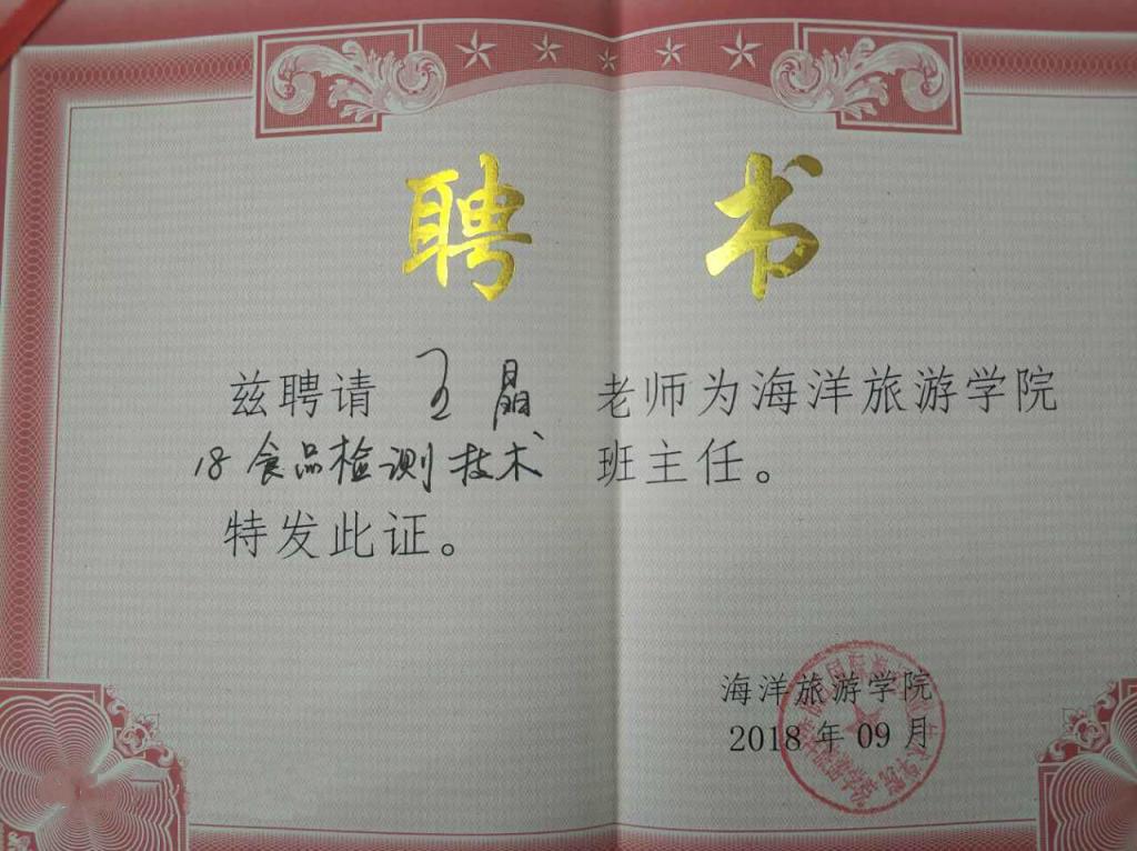 聘任仪式上,每位班主任都获颁了班主任聘书。(海洋旅游学院)