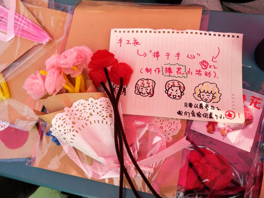 展示区的社团则各自准备了体现社团特色的互动游戏,弦心社的乐器教学、茶艺社的茶艺学习、手工社的捧花制作吸引了不少参与者,活动尚未开始时就有许多同学排队等候。