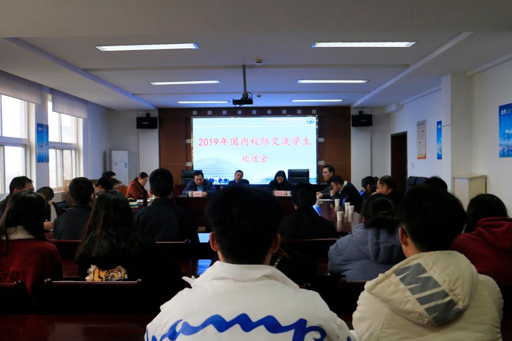 为开拓学生视野,促进院校间师生交流学习,3月1日,学校在行政楼401会议室召开了赴各兄弟院校交流学习学生欢送会。教务处处长叶明君、学生处处长王智明、相关学院负责人、教师代表及全体赴各兄弟院校交流学习学生参加了会议。