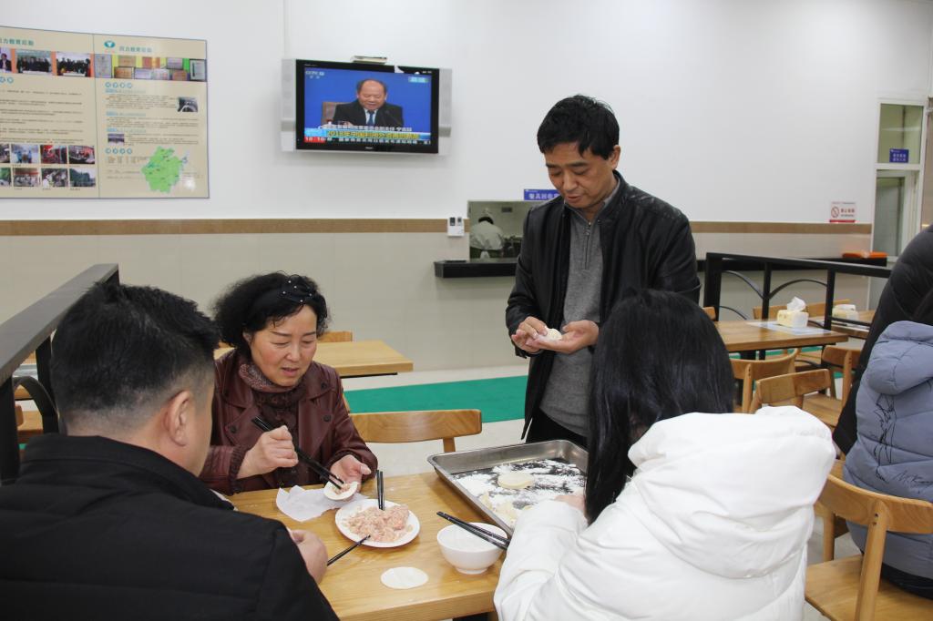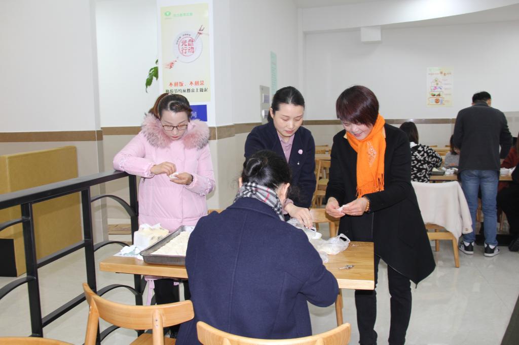 活动中,女同胞们个个热情高涨,摩拳擦掌,围坐一起展示包饺子手艺。男同胞们也踊跃参与其中露一手。现场欢声笑语,其乐融融。不一会儿功夫,一笼笼白嫩嫩如元宝般的饺子就包好了,紧接着一盘盘热气腾腾、香喷喷的煎饺、蒸饺、煮饺纷纷端上桌,全体教职工们一起分享着,快乐着。