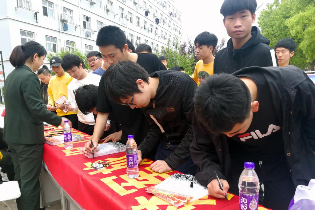 本次活动现场吸引了大量学生前来,400余名学生在“铸梦军旅,保卫四海昌平;青春无悔,彰显血色军魂”的横幅上进行签名,现场气氛热烈。