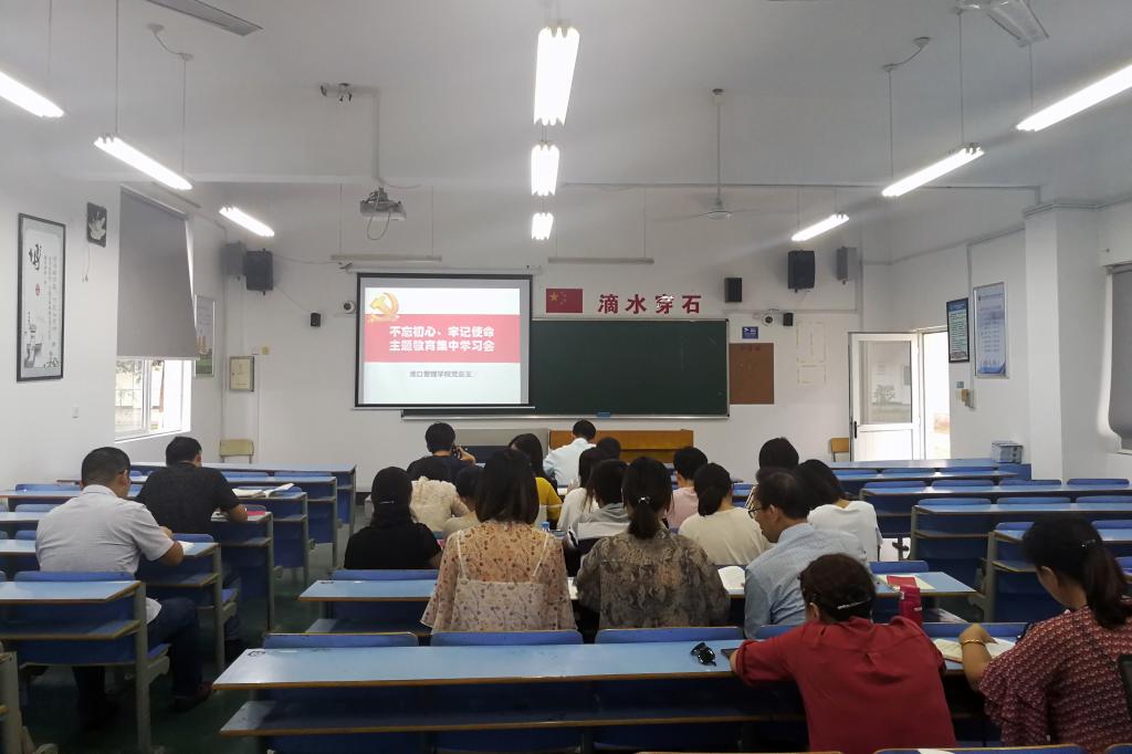 9月27日下午,港口管理学院党总支在教学楼4120召开“不忘初心、牢记使命“主题教育集中学习会,由党总支书记苏峰主持,学院全体党员参加学习。