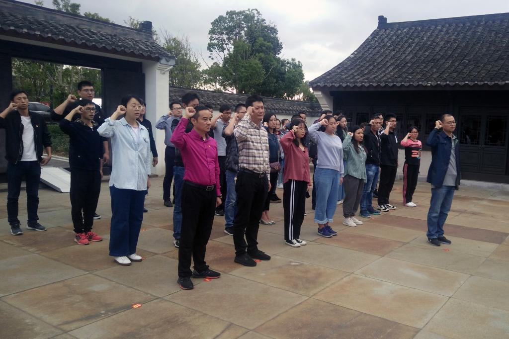 在古朴的院落中,师生党员们郑重地举起右手,面向党旗,在党总支宣传委员何琪的带领下重温入党誓词,进一步强化党员初心和使命意识。(图文/虞艳娜)