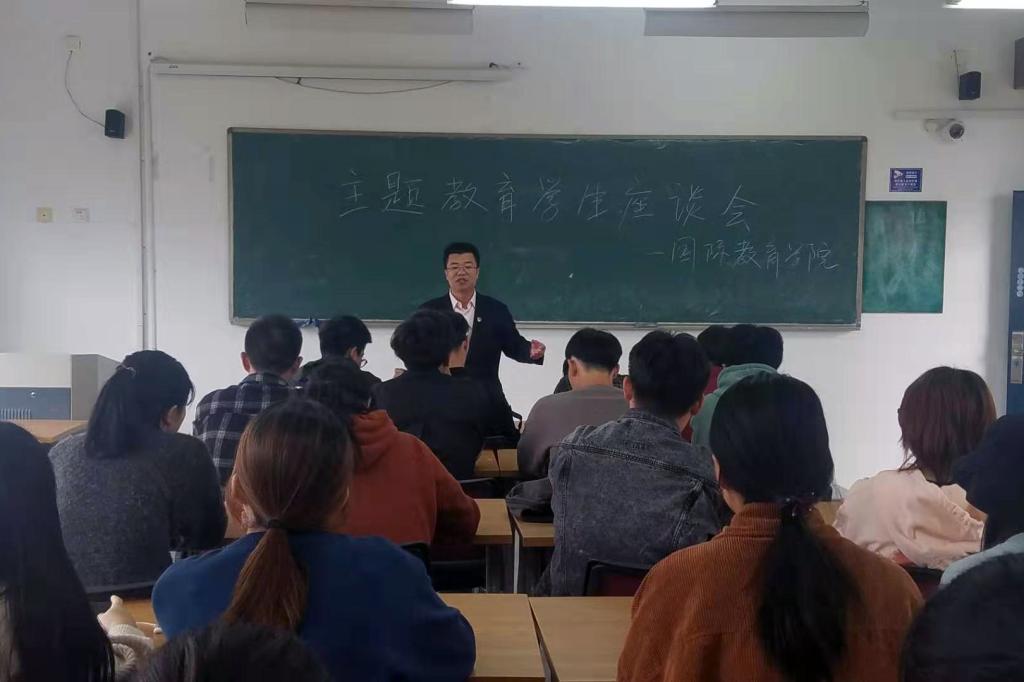 国际教育学院党支部书记黄承向同学们介绍了学院主题教育开展情况,鼓励同学们围绕“不忘初心、牢记使命”主题,畅所欲言,各抒己见。同学们结合自身实际情况,就职业生涯发展规划、对外交流活动、外教课程安排、党团员发展、评优评先等方面遇到的问题进行了坦诚交流,共同为建设团结和谐文明国教献计献策。
