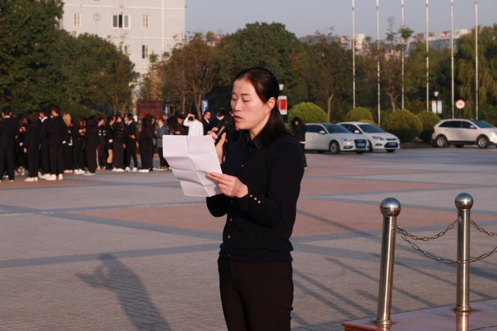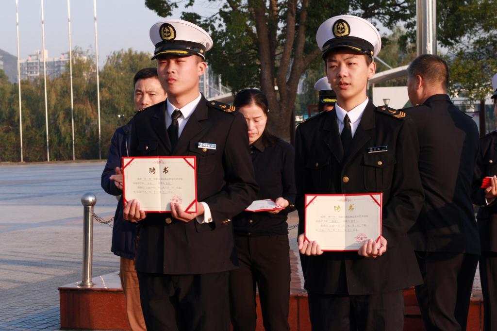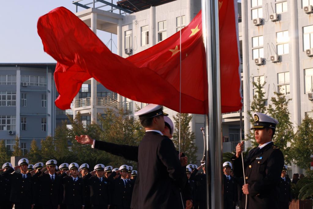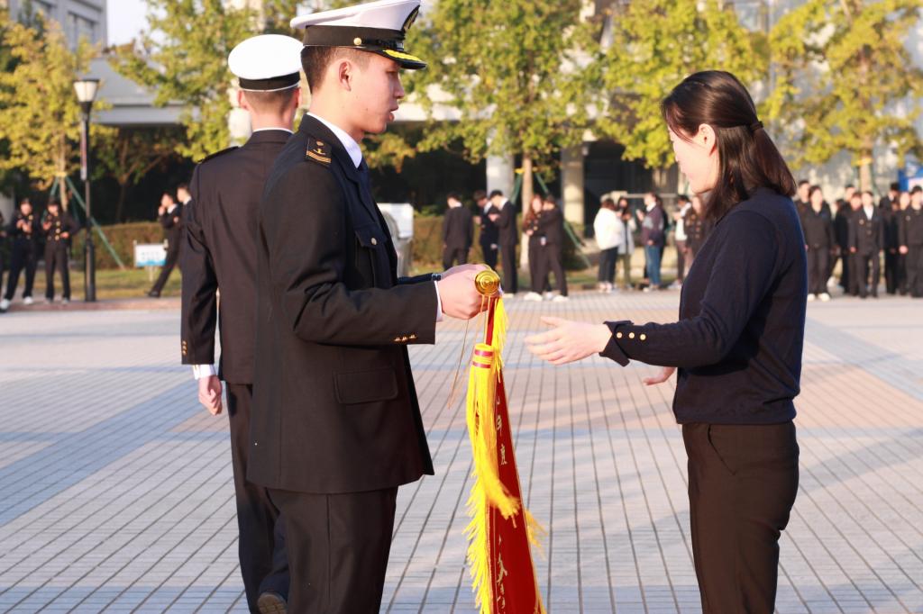 11月11日清晨,第四、第五届国旗护卫队于董浩云广场隆重集会,举行表彰暨换届仪式。校学工部部长、学生处处长芮明珠、航海工程学院党总支书记韩开封、海洋旅游学院党总支书记吴平波、港口管理学院党总支副书记王举生出席了仪式。