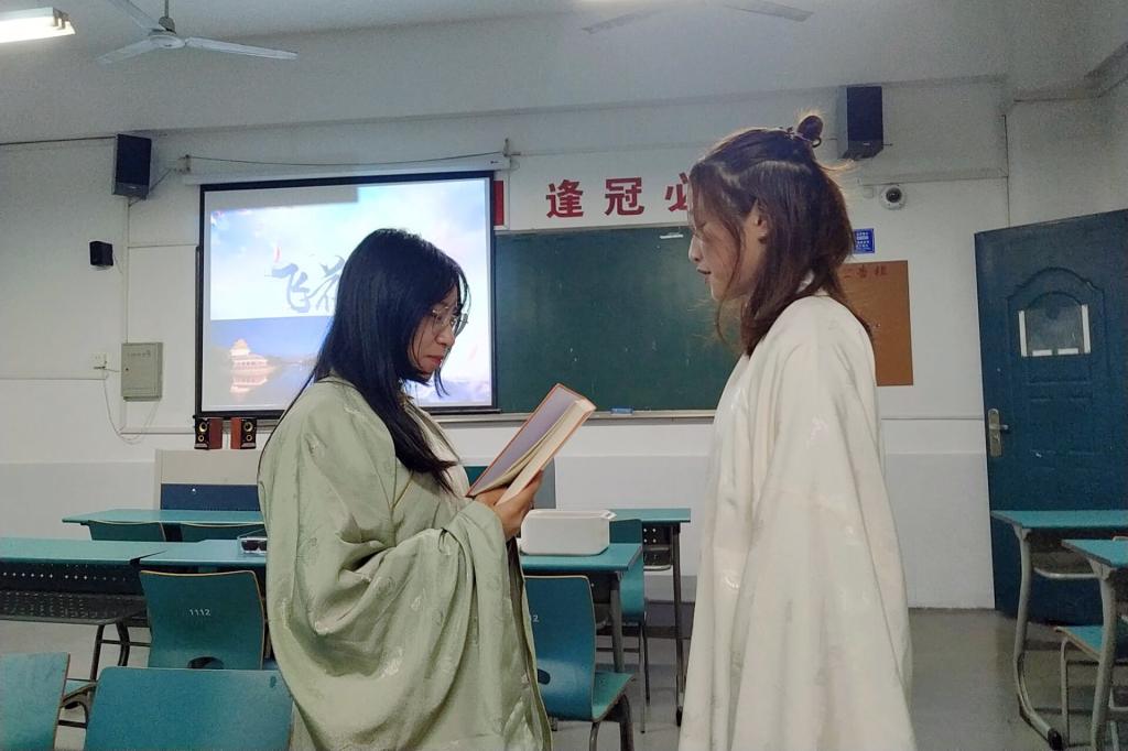 为传承国学经典,弘扬优良传统,引导学生全面认识中华民族历史传统、文化沉淀,传播中华文明,11月19日晚,船舶工程学院国粹社青衿组在1112教室开展了“飞花令”诗词文化大赏活动。