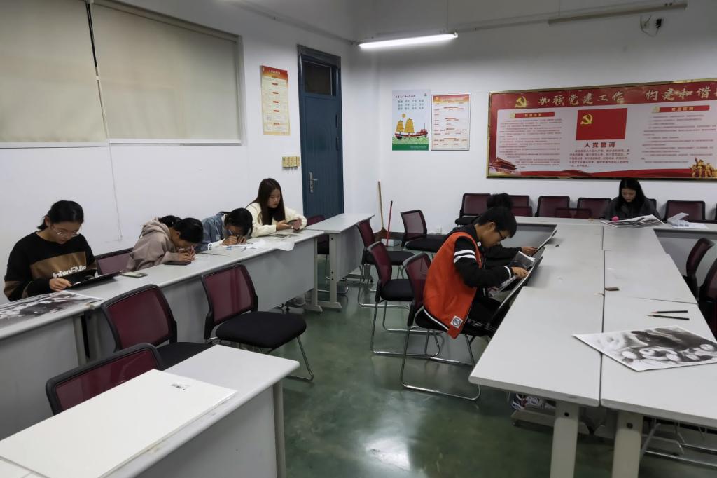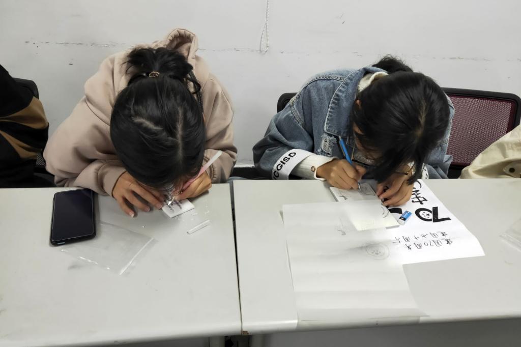活动中,参赛的同学们有的挥笔作画,有的拿着刻刀制作图章,一幅幅精美的画作和一个个红色主题图章展现出了当代大学生眼中最美的祖国。
