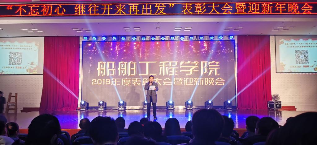 12月26日晚,“不忘初心,继往开来再出发”船舶工程学院2019年度表彰大会暨迎新年晚会在学校图书馆四楼报告厅举行。