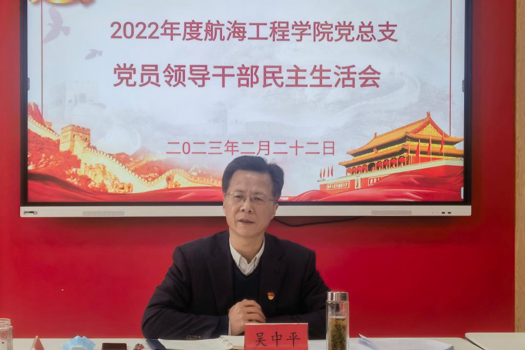 222日下午,航海工程学院党总支在海慧楼309会议室召开了2022年度民主生活会。校党委副书记、校长吴中平出席会议并指导,党委办公室副主任杨加力陪同,航海工程学院党总支成员参加会议。会议由党总支书记李刚主持。