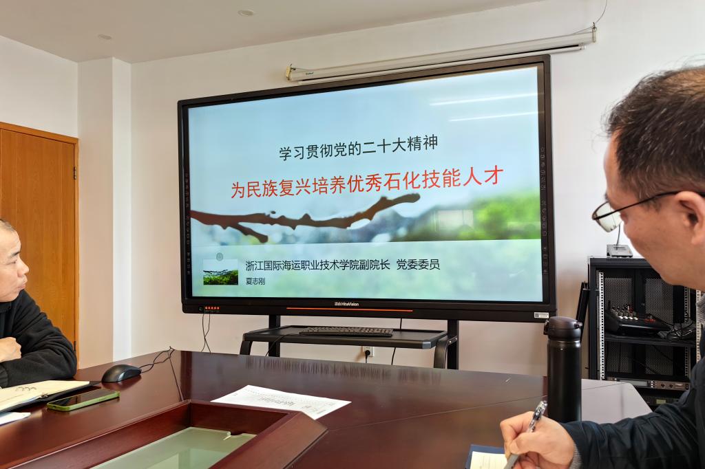 夏志刚副校长从全面深入学习领会党的二十大精神、石油化工在民族复兴中的重任、石化产业工人的价值与担当等三个方面,对党的二十大精神进行了全面宣讲和深入解读。