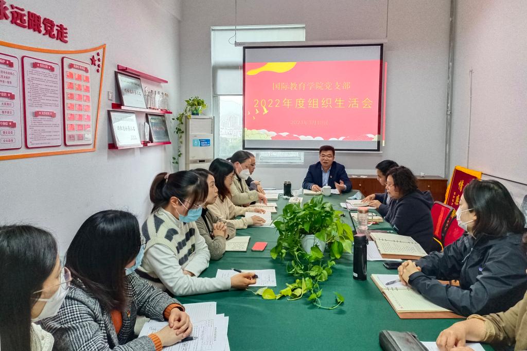 3月10日下午,国际教育学院党支部在海智楼1501会议室召开了2022年度组织生活会,支部全体教师党员参加会议,校党委委员、组织部部长黄承出席并指导会议。