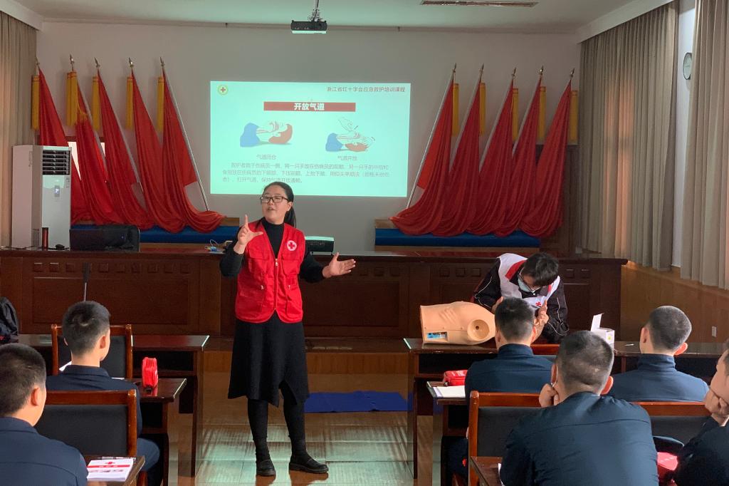 4月1日,石油化工学院“启航”救护队协助岱山县红十字协会走进岱山长涂某部队,开展急救知识培训活动。