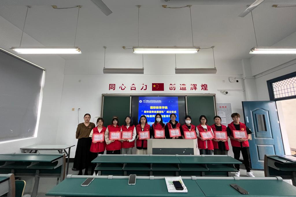 学院依托全体班主任、任课老师、辅导员、学生干部等力量,通过主题班会、专题讲座、现场宣传等开展多种形式的宣传活动,进一步提升全体师生的防诈意识和防诈能力,守住师生的“钱袋子”,筑牢校园安全防线。(国际教育学院)