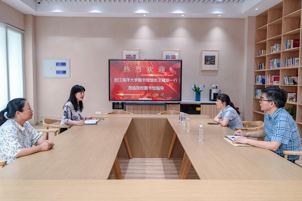6月27日,浙江海洋大学图书馆馆长王鸳珍一行来我校图书馆考察交流工作。考察小组受到了我校图书馆副馆长周勤和全馆馆员的热情接待。