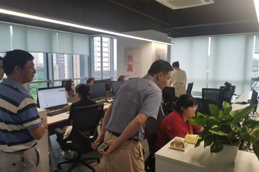 6月27日,现代港口贸易学院院长王贵斌、党总支书记吴平波、综合办主任邵佩华一行,专程前往舟山市跨境电商产业园区,看望在舟山市新蓝电子商务有限公司和舟山扶云跨境电子商务有限公司学习的15名学生,了解学生的学习和工作情况。