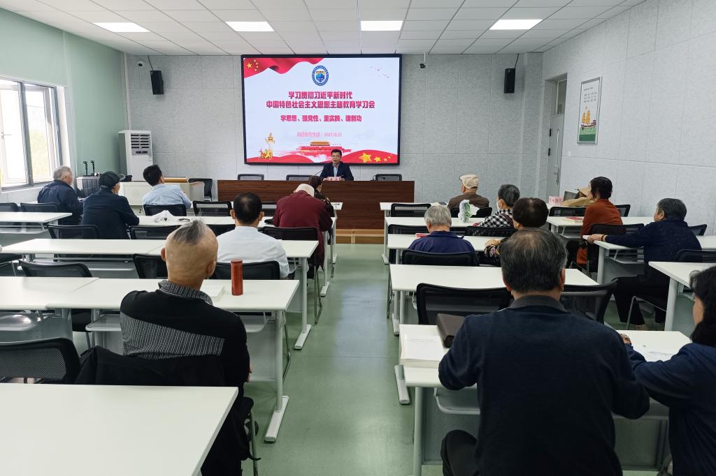 10月23日上午,学校离退休党支部在社会服务大楼303教室召开了学习贯彻习近平新时代中国特色社会主义思想主题教育学习会。校党委委员、组织部部长黄承出席会议,学习会由机关党总支书记韩开封主持,共有26名离退休党员干部参加了学习会。