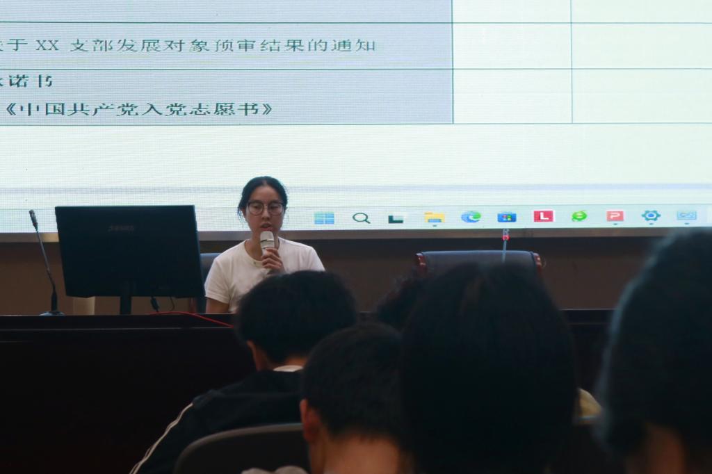 辅导员董译文、分团委书记孙丹晔分别解读了《学校学生手册》、《第二课堂学分管理办法(试行)》、《学生奖学金管理办法》等文件以及入团、入党的流程,帮助同学们了解熟悉校纪校规,树立规矩意识,养成良好学风校风。(图文/孙丹晔)