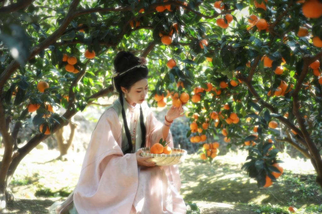 上午,汉服社的同学们身着汉服在橘树成荫下徜徉,化身橘子形象代言人。阳光透过树冠洒落,典雅的衣裙与红橘绿叶交相辉映,极具中国风韵的橘林汉服秀,吸引了当地村民纷纷驻足,对同学们的表现赞不绝口。摄影工作室的小伙伴们用镜头记录下这美妙画面。