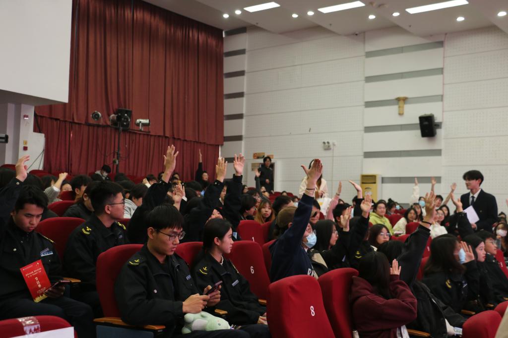 活动在校艺术团带来的舞蹈表演《觉醒年代》中拉开帷幕。来自舟山交投集团的宣讲员孙浩带来了《一起奔问共同富裕的明天》专题宣讲,带领大家走近习近平总书记在浙江考察时的一站,以新时代青年的观点、基层的视角、平实的语言向同学们阐述“八八战略”的浙江实践。我校“00”后宣讲员林伊涵为同学们进行《青春向党百年路,初心点亮新征程》专题宣讲,以自身的角度出发,以青年视角、青年语言讲述党的重要理论、重要思想、重大战略等在舟山的实践探索与成果。