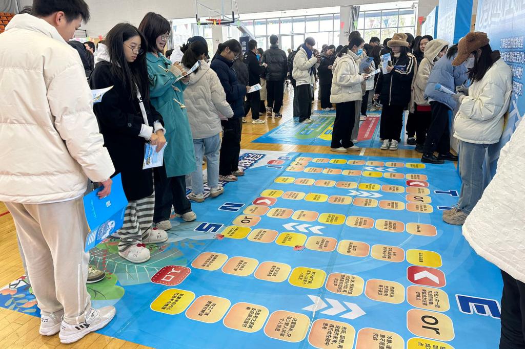 参与者手拿一张通关集章卡,每参与一个互动游戏可获得一个印章,根据印章数量不等兑换暖手袋、挂件等小礼品。各社团准备了“职业生涯嘉年华”、“寻找动漫coser”、“流体画钥匙扣DIY”、“投壶”、“手工贴画”、“趣味问答”等游戏活动,每个摊位前都排起了长长的队伍。