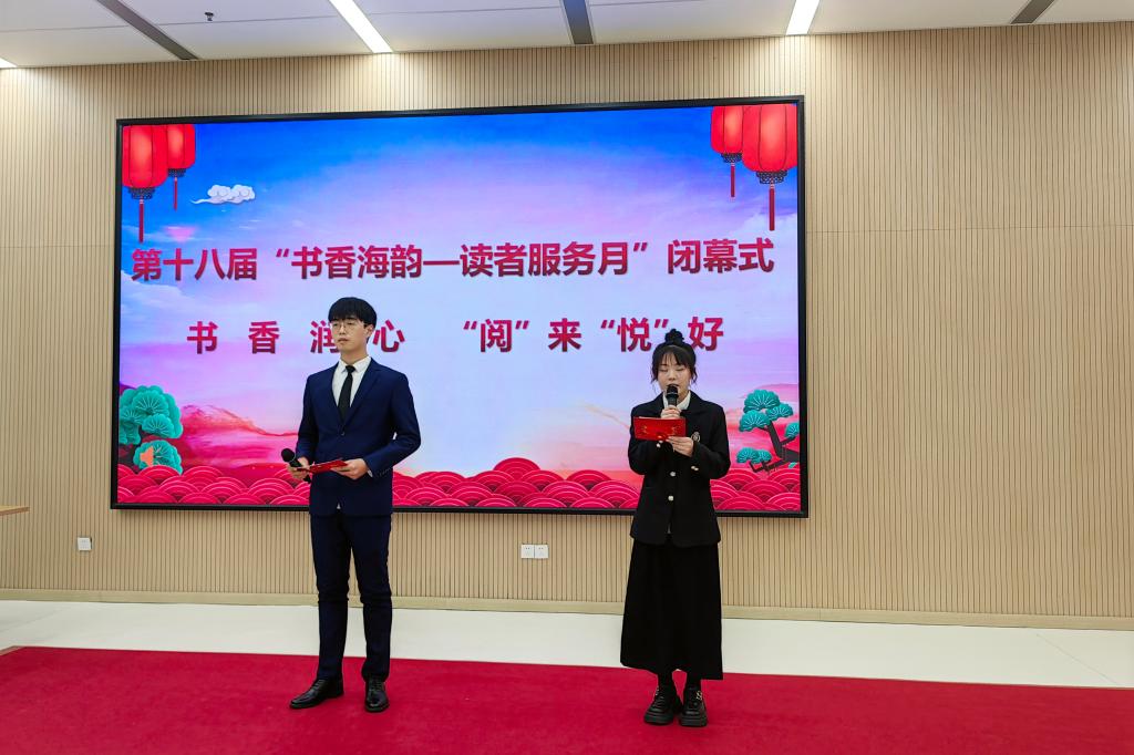 12月28日,由学校图书馆主办,宣传部、团委、科研与合作处、工会、文化体育部、各二级学院等共同承办的第十八届“书香海韵—读者服务月”闭幕式暨活动总结表彰大会在教师发展中心智慧教室圆满落下帷幕。图书馆、文化体育部、宣传部、科研处等部门负责人、各二级学院副书记以及部分获奖学生参加本次活动。