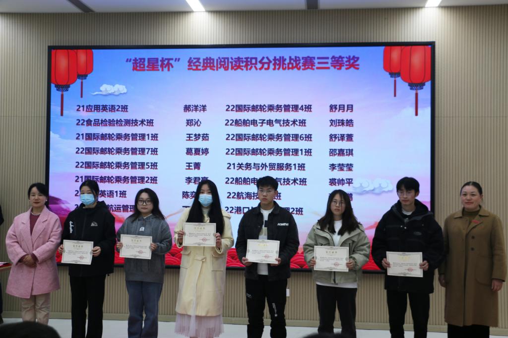 闭幕式以视频短片回顾了“读者服务月”活动的精彩瞬间,对各项比赛获奖者进行颁奖。其中海洋装备工程学院荣获图书检索团体一等奖;刘溢佳等9位同学荣获2023年度校园明星读者;董绍者等39名同学在“超星杯”经典阅读积分挑战赛中获奖;应雨佳等38名同学在2023年浙江省高职高专院校信息素养大赛中获奖。活动的成功举办丰富了同学们的业余生活,营造了书香海运氛围,推动了校园文化建设。(图文/刘霏霏)