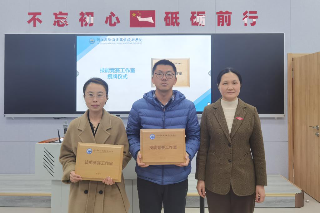 教务处处长郑燕华为海洋装备工程学院“船舶主机和轴系安装赛项”、石油化工学院“化学实验技术赛项”的技能竞赛工作室进行了授牌,并为今年新增赛项“手工艺设计”、“工业网络智能控制与维护”、“研学旅游”等赛项的指导老师颁发了聘书。