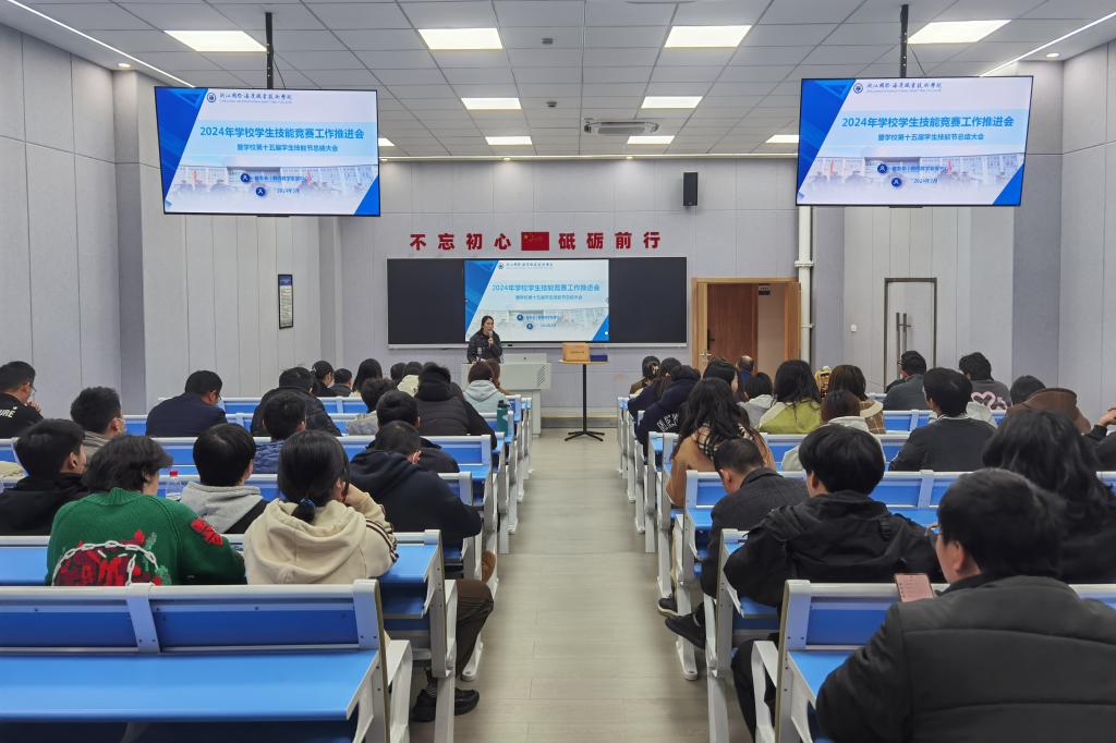 为进一步落实浙江省高职院校职业能力大赛组委会相关要求,提高各二级学院、指导教师对竞赛工作的重视程度、提升各赛项日常训练效果,凝聚力量推动赛前训练的时效性,力争在省赛中取得佳绩,321日,教务处在图书馆四楼阶梯教室召开了2024年学校学生技能竞赛工作推进会。教务处处长郑燕华、各二级学院副院长、赛项指导教师代表、参赛队员代表等80余人参加了此次会议。