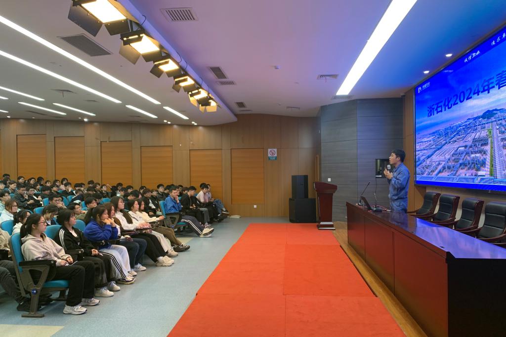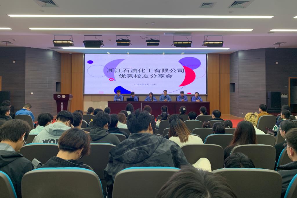 4月19日,石油化工学院在岱山校区报告厅召开了浙江石油化工有限公司优秀校友分享会,2021届毕业生戎咨晓、蔡秉珂,2022届毕业生聂逗逗以及实习生王宇欢、朱松坚,学院党总支书记童年华、浙江石油化工有限公司人事经理罗威参加了交流会。