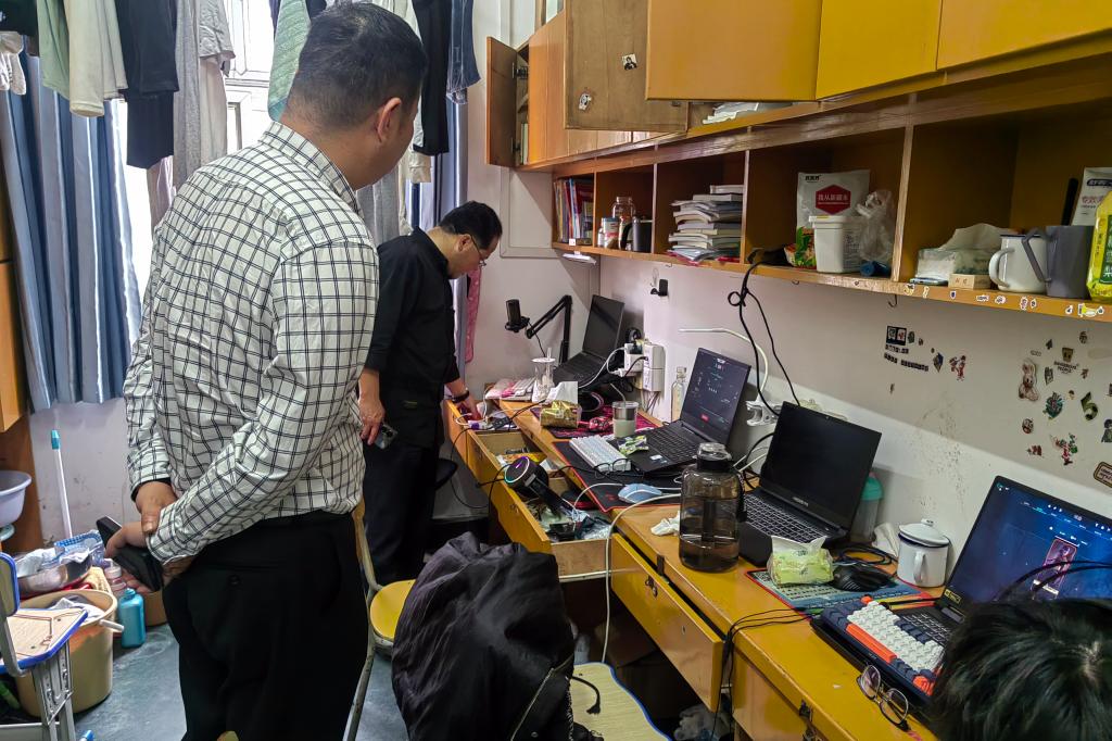 孔志光副书记深入学生寝室,对寝室内吸烟和使用大功率电器问题进行了仔细检查,发现问题当场指出,并责令相关责任人立即整改,要求惩戒措施务必到位,同时劝诫同学们,寝室是人群密集场所,一定要注意消防安全,不能在寝室吸烟、不能使用大功率电器,保持寝室整洁,健康生活。