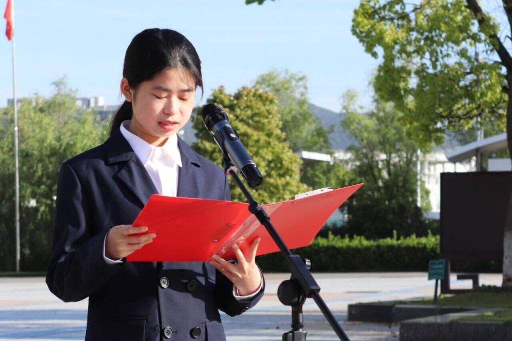 校团委学生负责人、现代港口贸易学院2022级跨境电商1班的戴丁怡作为学生代表发言,她表示,希望同学们要在学习中明确努力方向;要在阅读中拓展知识视野;要在生活中练就强健体魄;要在实践中厚植本土情怀。她号召全体青年学生“建设良好的学风,从我做起!”