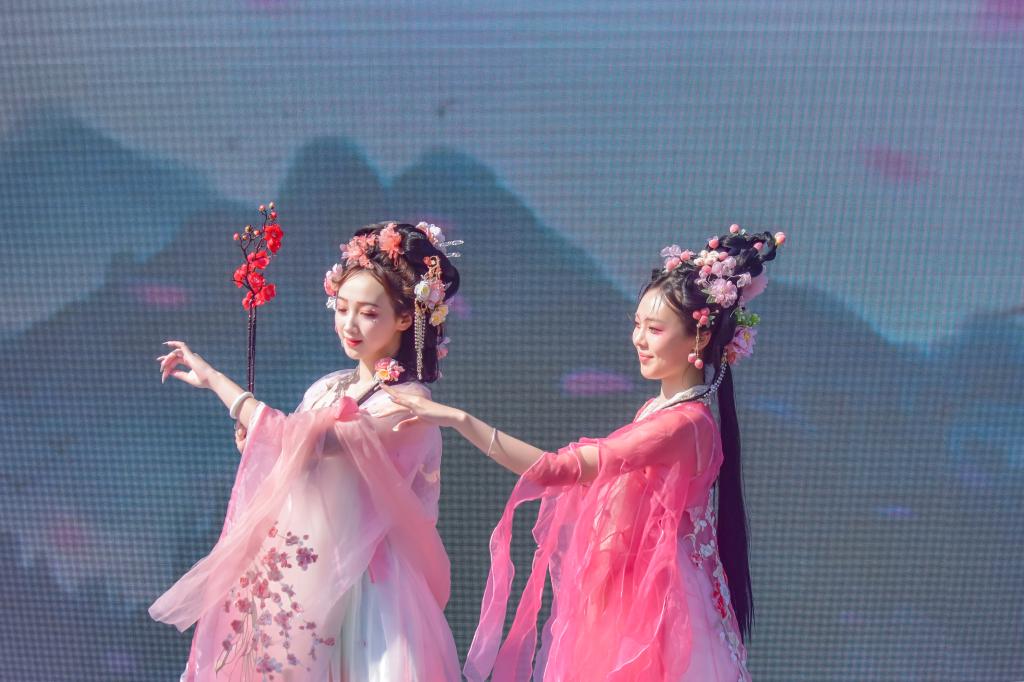 花朝节,象征着百花的生日,也承载着人们对自然和生命的敬畏与热爱。12名海运学子身着汉服,仿佛穿越时空而来,他们的每一次起舞、每一声歌唱,都将传统文化与现代青春完美融合。