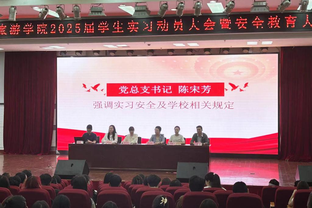 5月22日,海洋旅游学院在图书馆四楼报告厅举行2025届毕业生实习动员暨安全教育大会。海洋旅游学院院长黄灵霞、党总支书记陈宋芳、副院长刘利娜、专业教学团队负责人到会,全体2025届毕业生参加。会议由学院党总支副书记管建民主持。