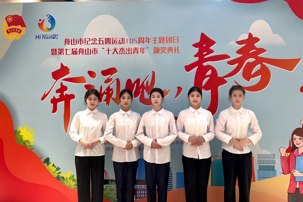 五月初,礼仪社与舟山日报社合作,共同参与了舟山市纪念五四运动105周年主题团日暨第七届舟山市“十大杰出青年”颁奖典礼。