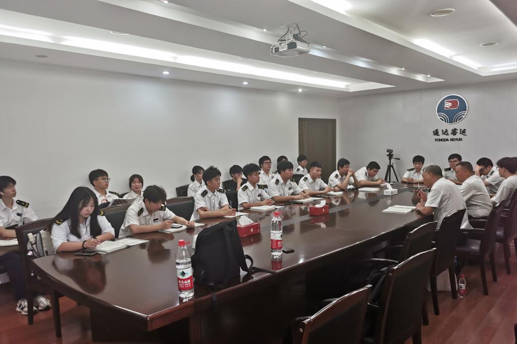 在航运企业里,师生们会同企业负责人一起交流探讨分享在船舶安全管理方面的经验以及在船员工伤、事故预防方面的良好做法。在港口码头上,老师带领同学们一起向码头工人宣讲海上系解缆作业以及货物装卸作业中存在的安全风险以及防范措施,并解读了一些事故案例。随后,师生们登上码头停靠的船舶,在船上与船长和船员一起交流船上关键性操作中存在的风险、应对措施以及海上应急方面的相关知识和技能,同时还就海洋环境保护方面的话题进行了探讨交流。