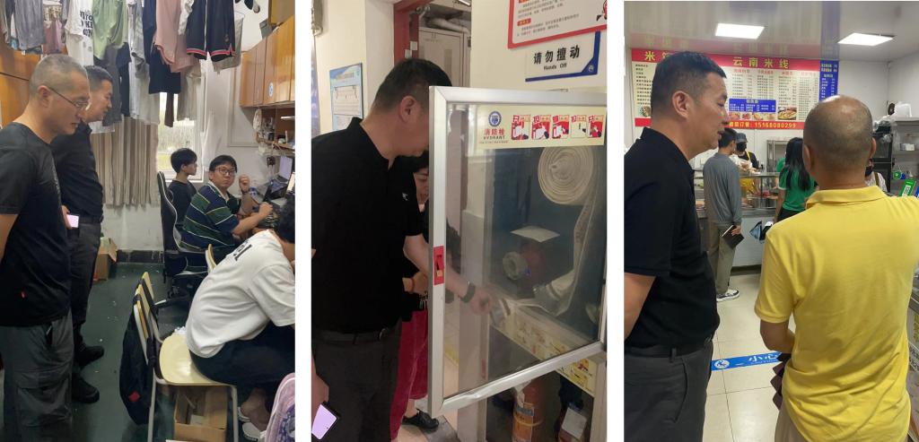 检查过程中,重点对商贸区商铺、食堂消防管路、大功率电器使用、油烟清洗等进行了全面排查,并提出了针对性意见建议;对发现的挡鼠板使用不严谨、口罩佩戴不规范等问题,即令即改;对教学区墙体开裂、部分踏板锈蚀等问题登记上报,研究制定整改方案。