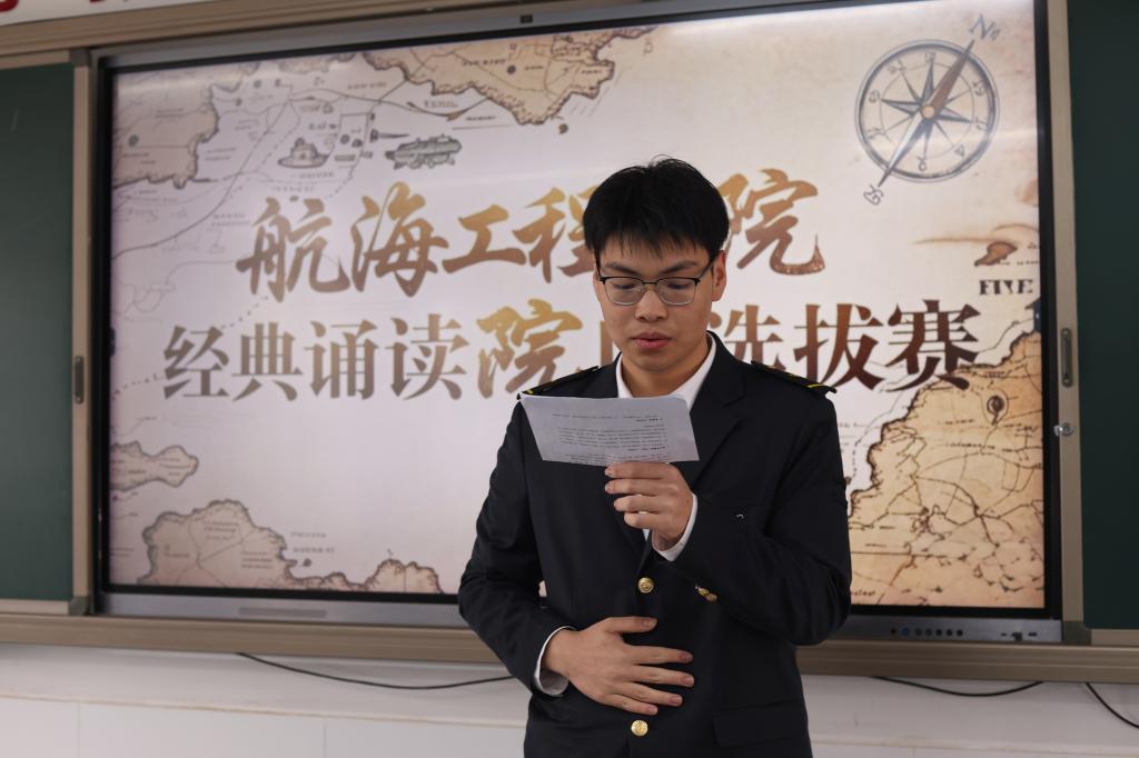 本次比赛由古代诗文、现代文朗诵两部分组成,分别从语言表达、仪表形象、朗诵效果、态势神情等4部分考查选手的综合能力。各位选手以饱满的热情将一篇篇经典篇目演绎得生动感人,在诵读内容的选择、舞台形象的表现等方面都进行了精心设计。经过角逐,最终2024级航海技术4班励元添、2024级港口与航运管理2班陈逸轩、2024级航海技术1班朱禹澄以及2024级港口与航运管理1班徐雅真被推荐参加校赛。