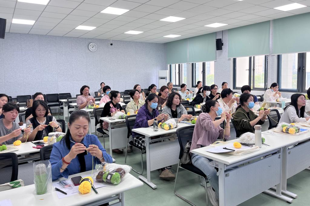 学院特邀原舟山航海学校高级讲师、编织钩针爱好者郑美芬老师为参训学员详细讲授手工钩织的起针、花型针法、颜色变换、收放针、线头处理等钩织全流程内容,从理论讲解到手把手教授,让大家受益匪浅。在学习过程中,学员们互相交流探讨、增进技艺,形成了彼此之间互通有无、互帮互助的良好氛围。