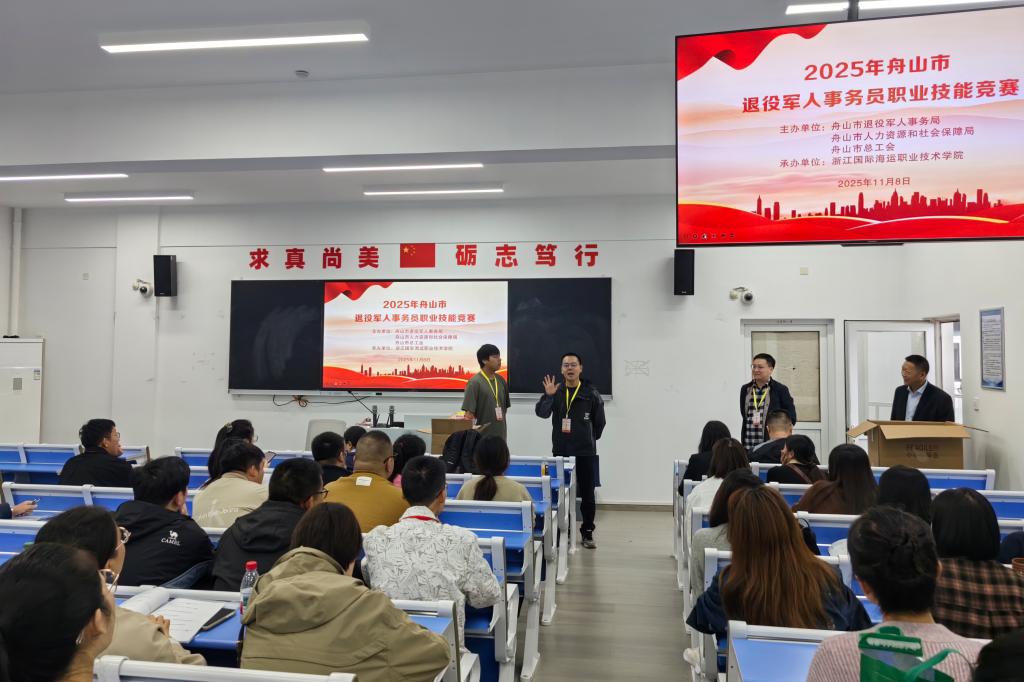 为进一步推动全市退役军人服务中心(站)人才队伍高质量发展,11月8日,2025年舟山市首届退役军人事务员职业技能竞赛在我校举行。竞赛由舟山市退役军人事务局、舟山市人力资源和社会保障局、舟山市总工会联合主办,我校承办,共有来自全市各级退役军人服务中心( 站) 48名工作人员参加竞赛。