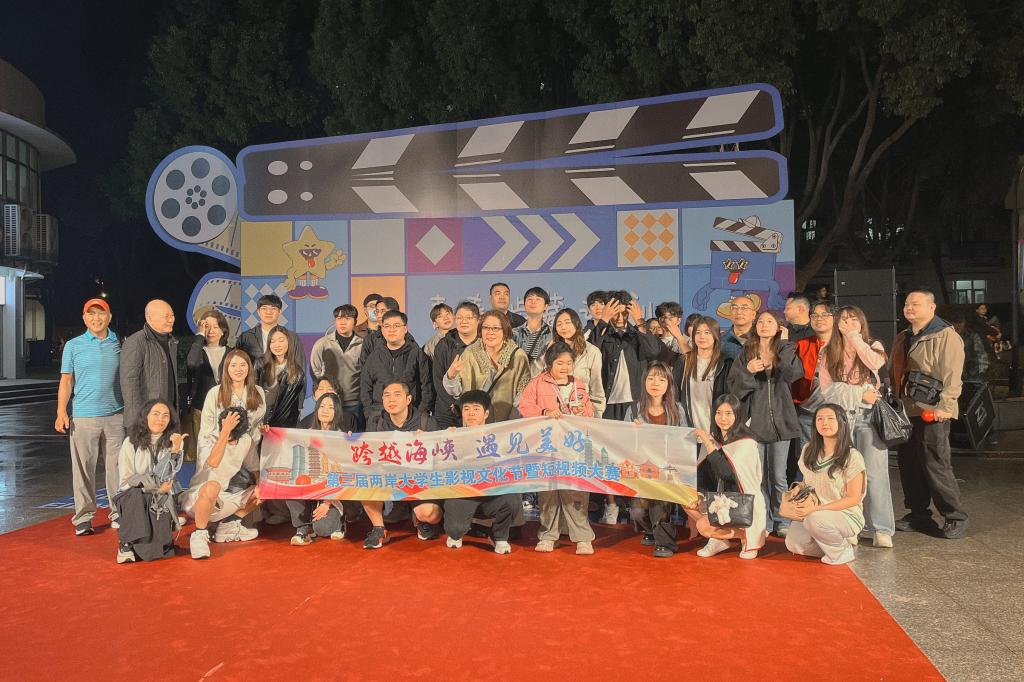 在“声临其境片场”互动区亮点纷呈,露天放映的影片《东极岛》让学子们深切感受舟山渔民的国际人道主义精神与海岛人文底蕴。值得一提的是,来自台湾的学生与我校学子在现场亲切交流,围绕电影文化、海岛风情畅聊分享,在互动中增进了解、拉近距离。