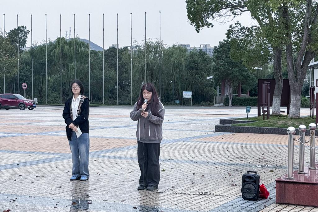 升旗仪式由学院团委学生会主席团成员陆威延同学主持。伴随着雄壮的《义勇军进行曲》,五星红旗冉冉升起,全体师生肃立行注目礼,心中涌动着对祖国的崇敬与热爱。