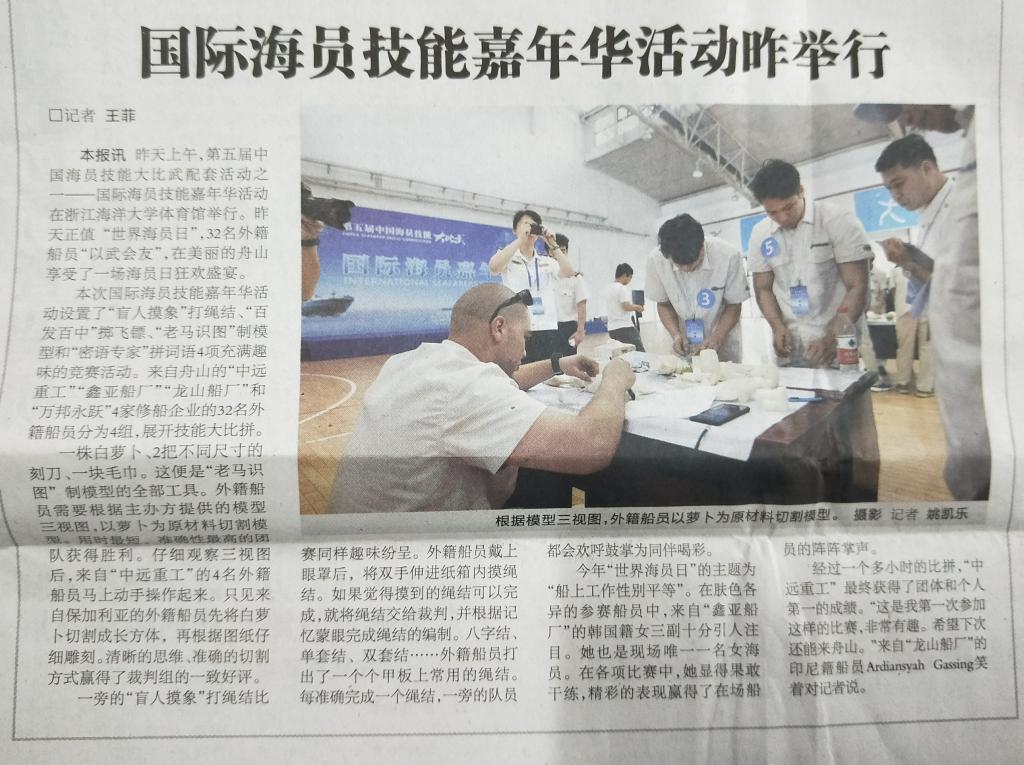 《舟山日报》:国际海员技能嘉年华活动昨举行