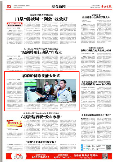 《舟山日报》:客船船员昨技能大比武