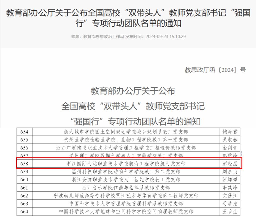 高校“双带头人”教师党支部书记“强国行”专项行动,是教育部为创新落实立德树人根本任务,深入贯彻落实教育部党组关于高校“双带头人”教师党支部书记培育工作的部署要求,充分发挥高校“双带头人”的示范引领作用,引导广大师生在以中国式现代化全面推进强国建设、民族复兴伟业新征程上砥砺新担当、展现新作为,自2024年起组织开展的专项行动,入选该项目的教师党支部将积极投身服务国家重大战略和地方经济社会高质量发展一线,扎实开展党建联建、创新教育服务、推动科技赋能、深化实践育人等工作,此次全国共有1486个项目入选。