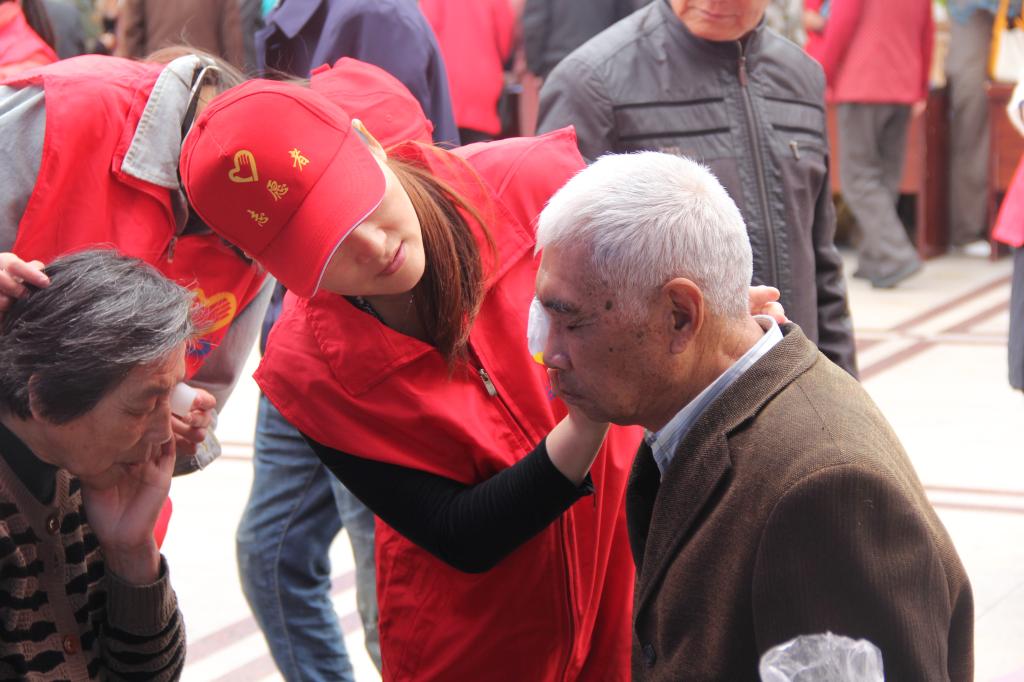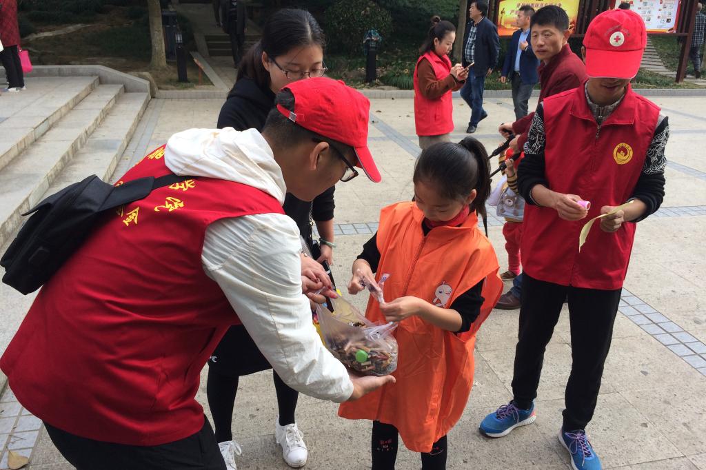 12月4日上午,志愿者们来到普陀区北安公园开展文明城市创建宣传,并为为沈家门老城区的老人们提供冬季健康知识咨询、血压测量、理发等便民服务。