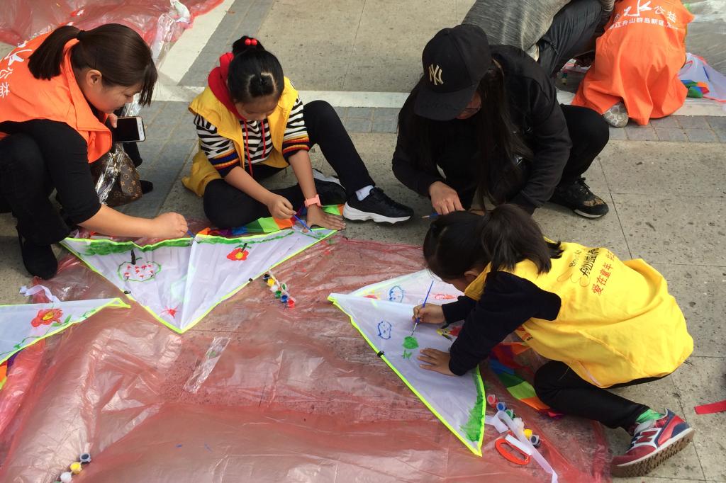 12月2日一早,“同舟基金”的志愿者们就来到定海海山公园,带领新区的孩子们一起宣读文明(宣读创全国文明城市倡议书并在横幅上签字);寻找文明(完成捡烟头、辨别分类垃圾桶、寻找核心价值观广告);放飞文明(在风筝上画创城内容的画并放飞)。