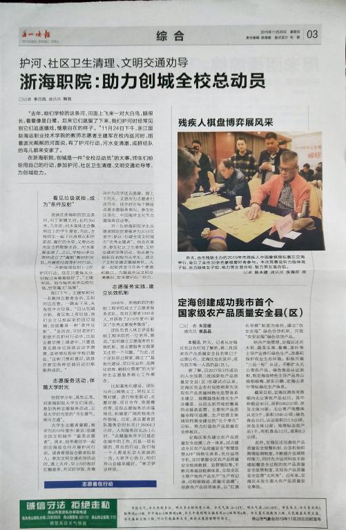 《舟山晚报》/《舟派校园》:浙海职院:助力创城全校总动员