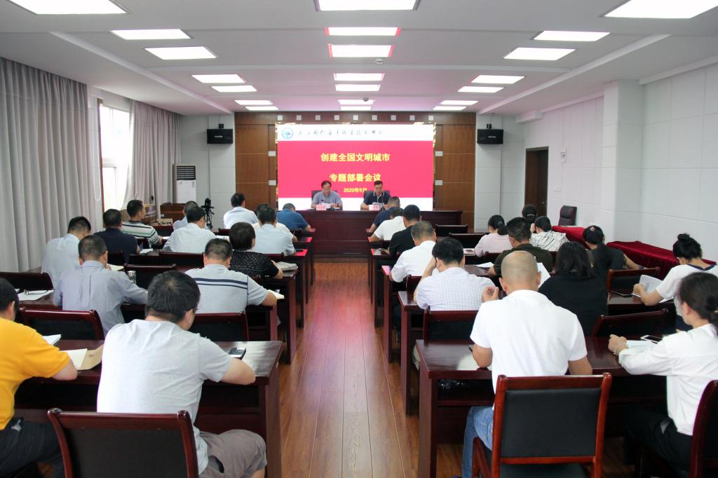 为全力打赢创建全国文明城市决战,9月14日下午,学校在行政楼401会议室召开创建全国文明城市专题部署会议,进行再动员再部署。校党委副书记孔志光和相关部门负责人参加会议。会议由宣传部(统战部)部长陈永芳主持。