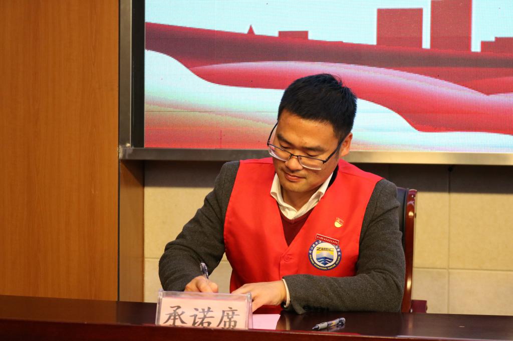 随后,姜君轶副部长和郑忠义书记分别为党员突击队和青年突击队授旗,师生突击队代表分别上台签署了文明承诺书。